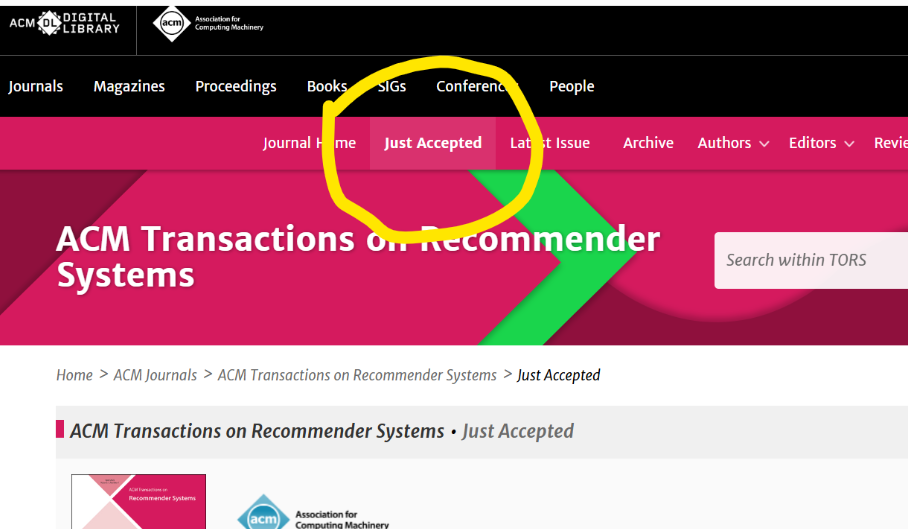 We are glad to announce many new “just accepted” articles at ACM TORS. They cover important themes shaping the next decade of recommender-systems research. We are particularly proud to see contributions from leading authorities in the RecSys community. In the past six months alone this includes articles by Alan Said, Barry Smyth, Dietmar Jannach, Michael Ekstrand, Robin Burke, Francesco Ricci, Joeran Beel, Maria Soldedad Pera, Markus Zanker, Marko Tkalcic, Li Chen, and many more.