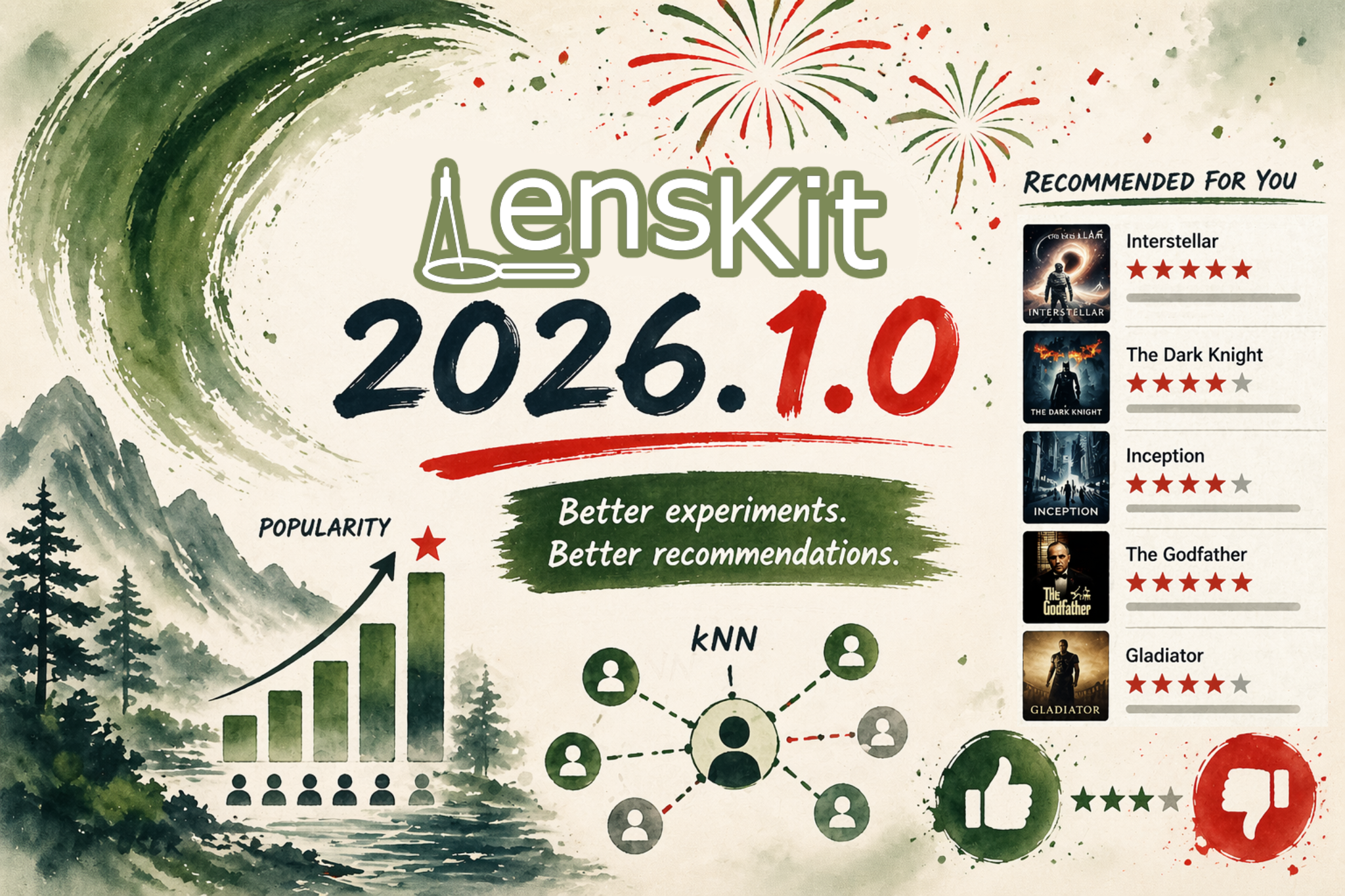 LensKit 2026.1.0 (Website; GitHub) has been released, and it is best understood as a continuation of the refactoring effort that reshaped the library in 2025. That earlier redesign moved LensKit away from its legacy experiment abstractions toward a more explicit, pipeline-oriented structure. The current release does not introduce a new direction. It stabilizes that transition.